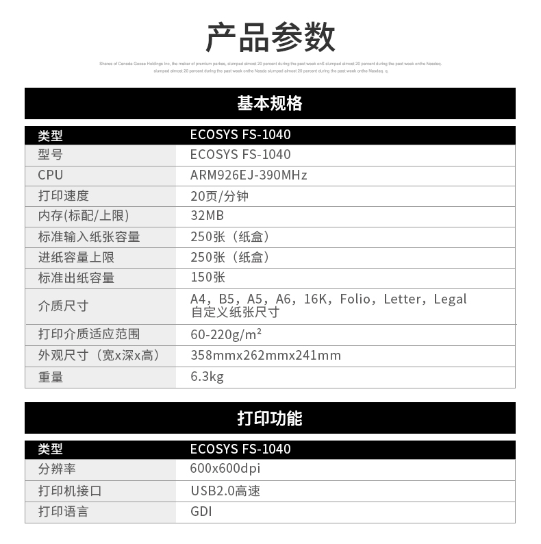 • 產(chǎn)品名稱(chēng):京瓷(KYOCERA)FS-1040激光打印機(jī)