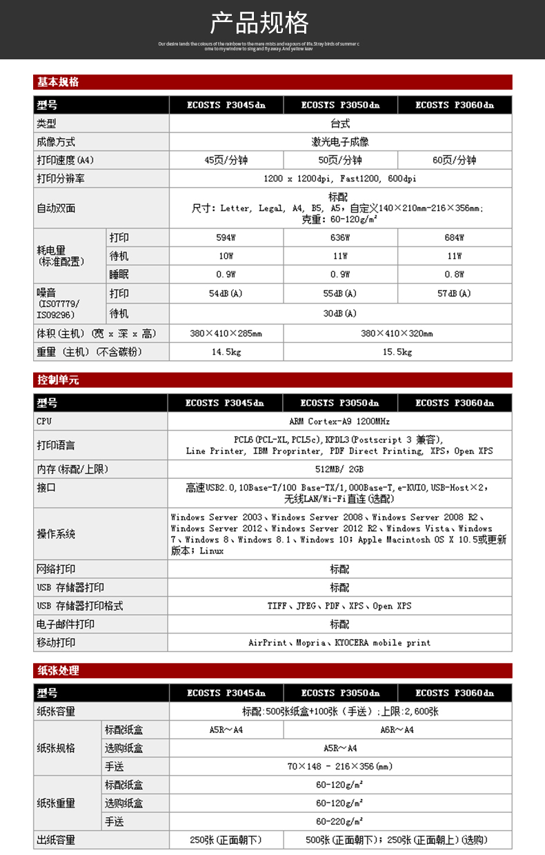 • 產(chǎn)品品牌:京瓷(KYOCERA)P3060dn激光打印機(jī)