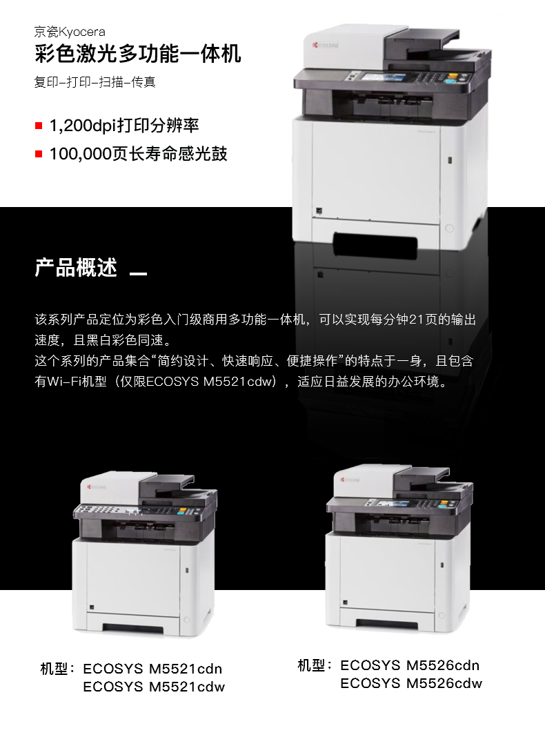 • 產(chǎn)品名稱:京瓷(KYOCERA)M5526cdw多功能一體機(jī)