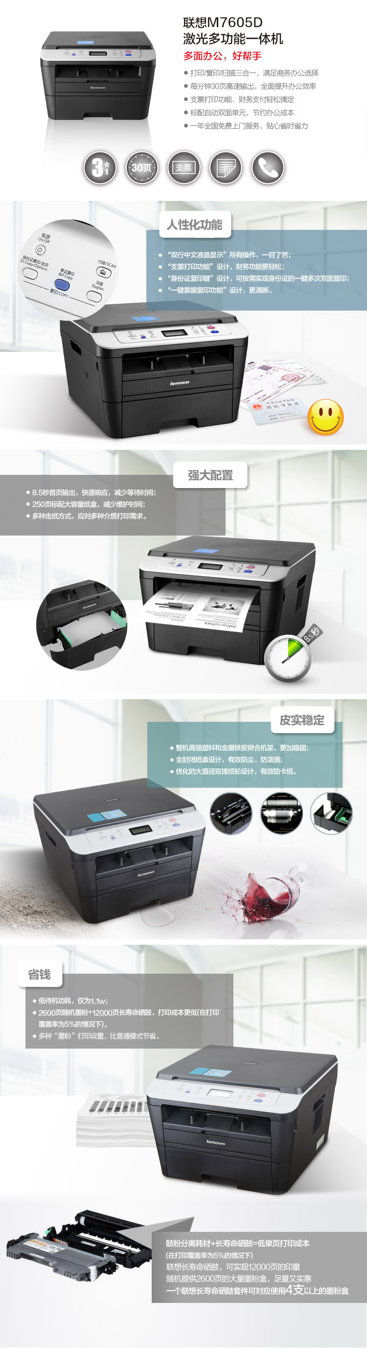 • 產(chǎn)品品牌:聯(lián)想(Lenovo)M7605D 黑白激光三合一多功能一體機(jī)
