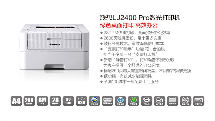 • 產(chǎn)品名稱:聯(lián)想LJ2400PRO黑白激光A4打印機(jī)