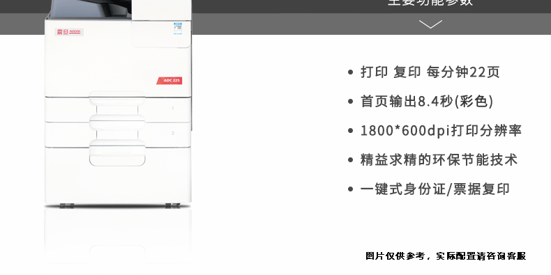 震旦(AURORA)ADC225 A3彩色多功能數(shù)碼復(fù)合機 499元 彩色300張黑色3000張 彩色0.5每張 黑色0.08元每張 5988