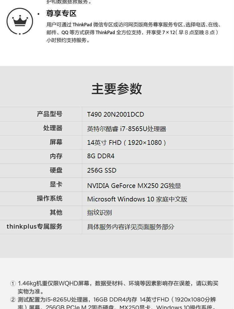• 產(chǎn)品名稱:聯(lián)想ThinkPad T490 20N2001DCD 14英寸輕薄筆記本電腦 i7-8565U/8G/256GSSD/2G獨(dú)顯 FHD指紋識(shí)別