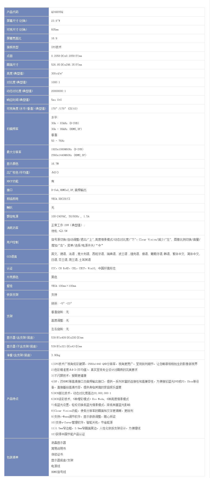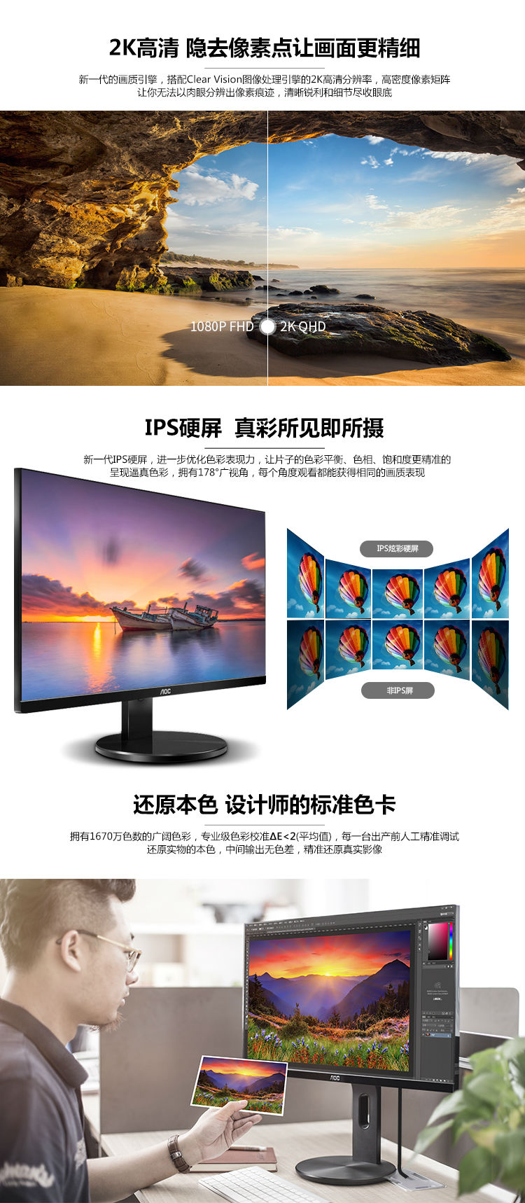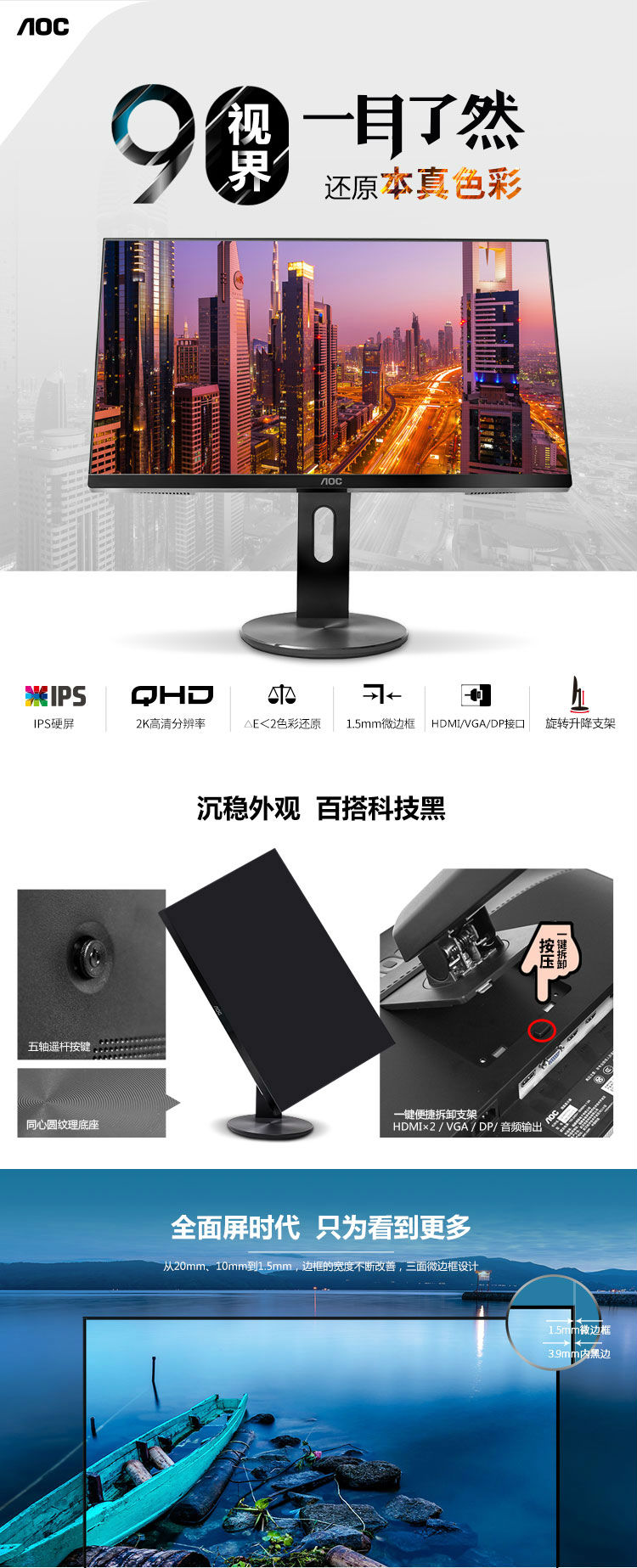 • 產品名稱:AOC顯示器 Q2490VXQ 23.8寸 IPS 2K無邊框高清液晶顯示器