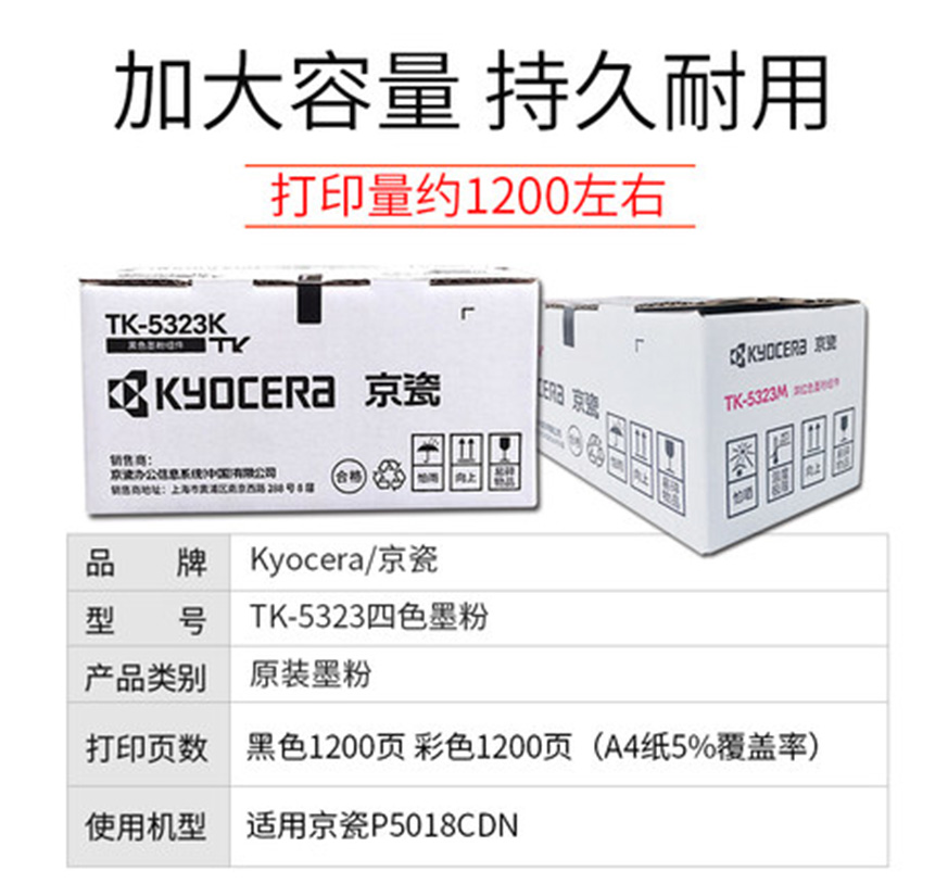 • 產(chǎn)品名稱:京瓷(KYOCERA)TK-5323K/C/M/Y墨粉/墨盒 適用京瓷P5018cdn
