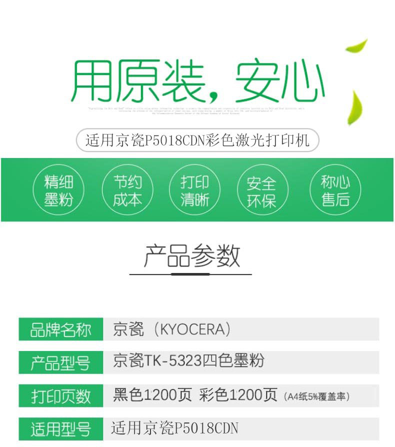 • 產(chǎn)品品牌:京瓷(KYOCERA)TK-5323K/C/M/Y墨粉/墨盒 適用京瓷P5018cdn