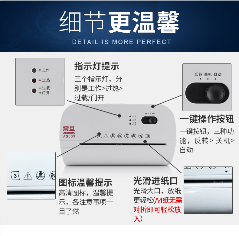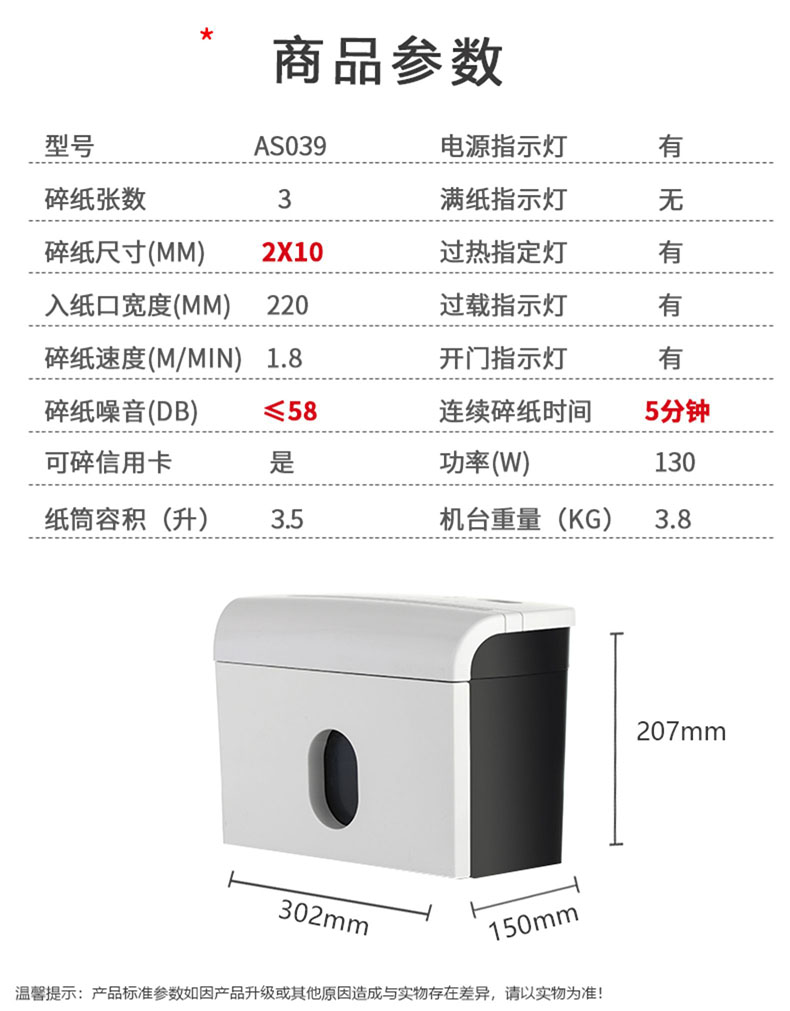 • 產(chǎn)品名稱:震旦碎紙機(jī) AS039辦公低音便攜小型家用桌面型迷你5級(jí)保密