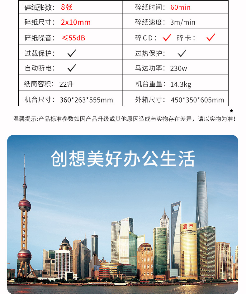 • 產(chǎn)品名稱:震旦(AURORA) AS088CD多功能碎紙機辦公單次8張碎CD 5級保密低音