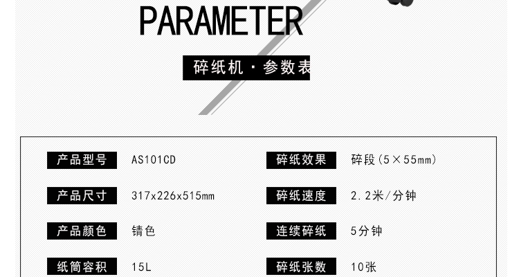 • 產(chǎn)品名稱:震旦(AURORA)AS101CD專業(yè)辦公碎紙機保密靜音單次10張新款