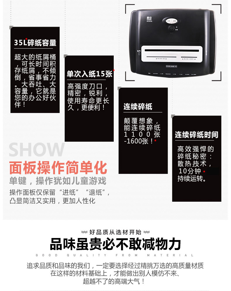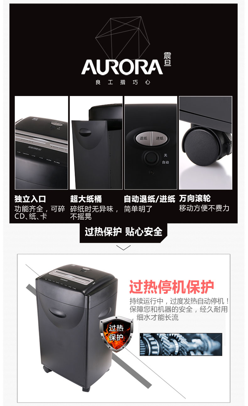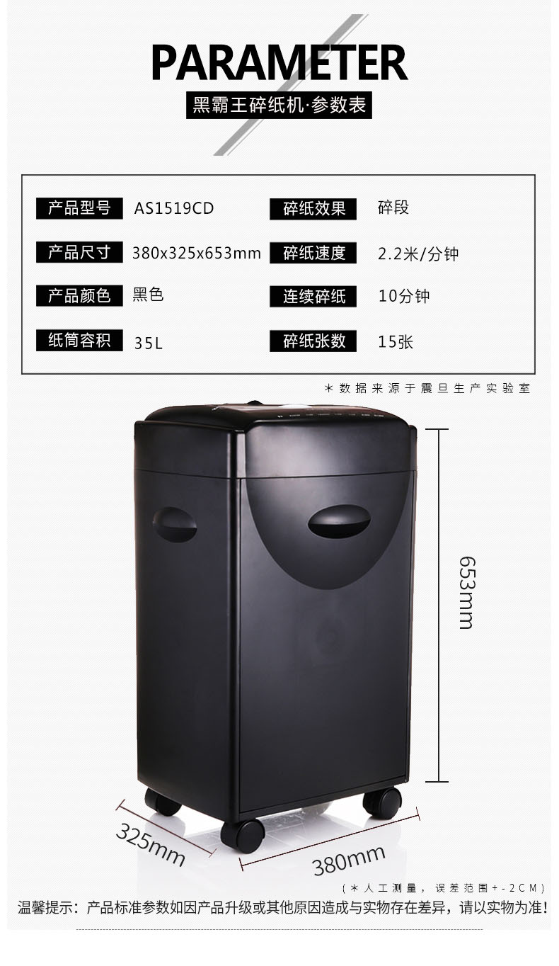 • 產(chǎn)品名稱:震旦AS1519CD專業(yè)大容量辦公碎紙機(單次碎15張超大紙筒35升碎CD)