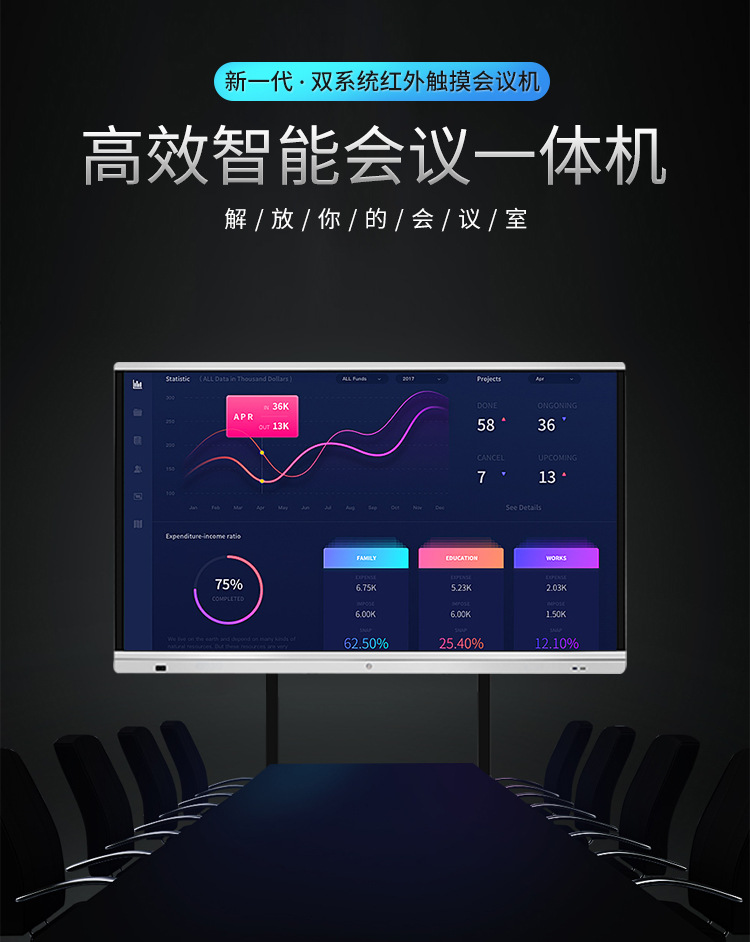 • 產(chǎn)品品牌:藍(lán)舟55/65/75/85/98寸會議觸摸一體機(jī)
