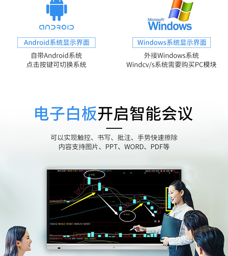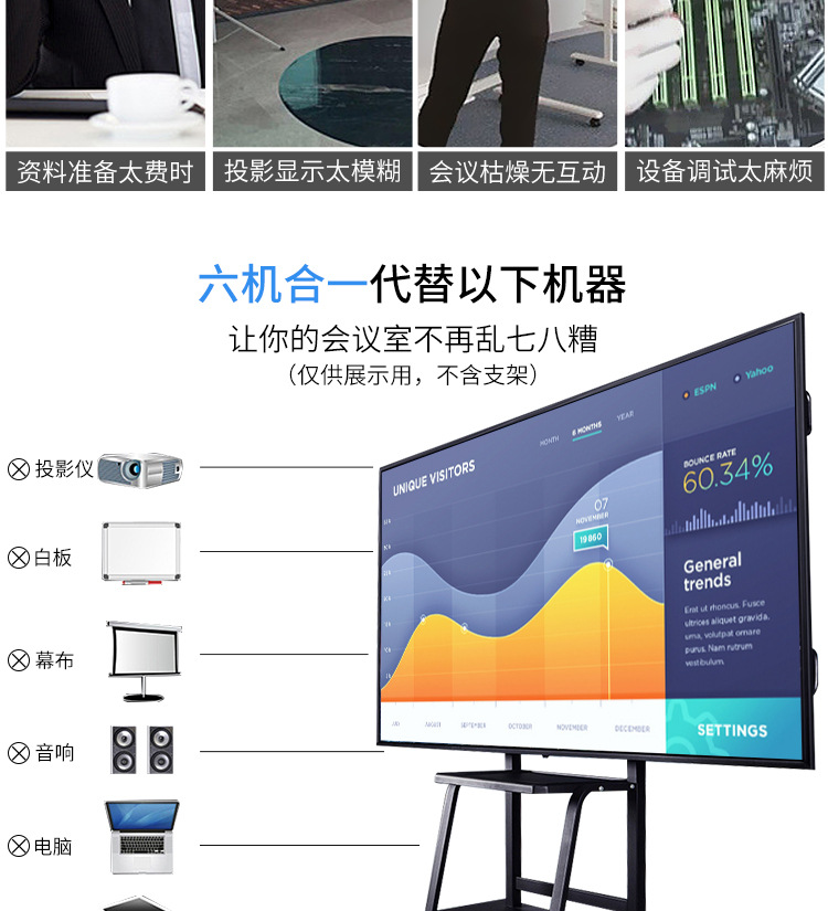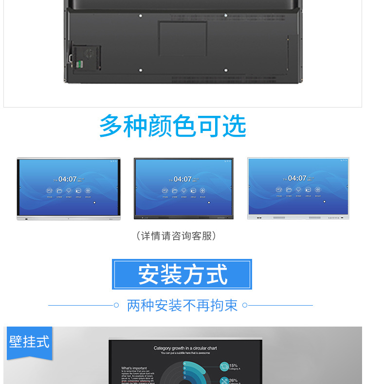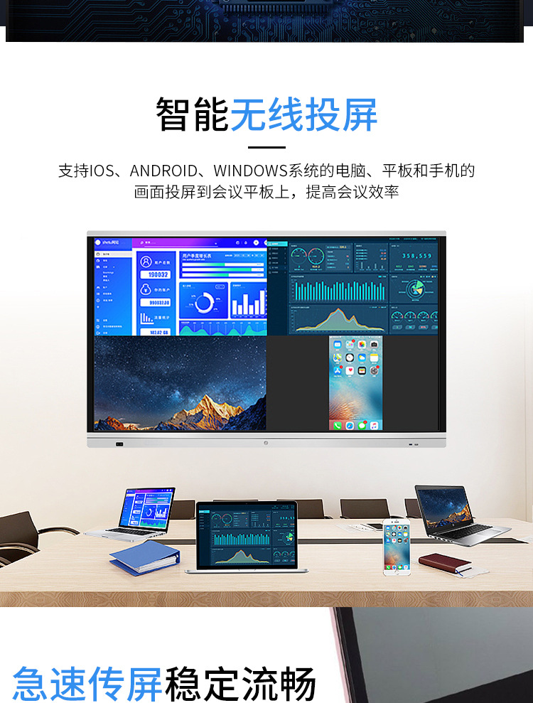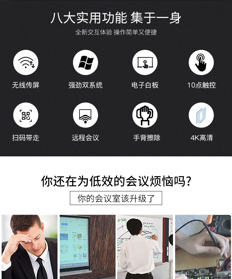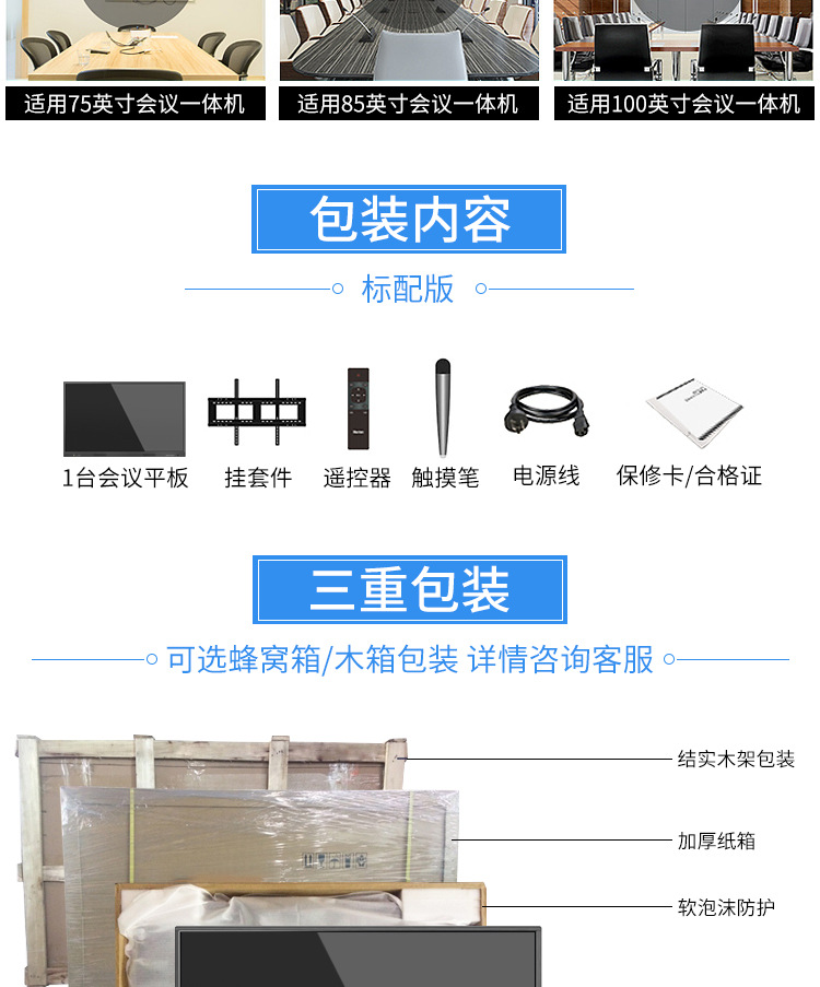 • 產(chǎn)品名稱:藍(lán)舟55/65/75/85/98寸會議觸摸一體機(jī)