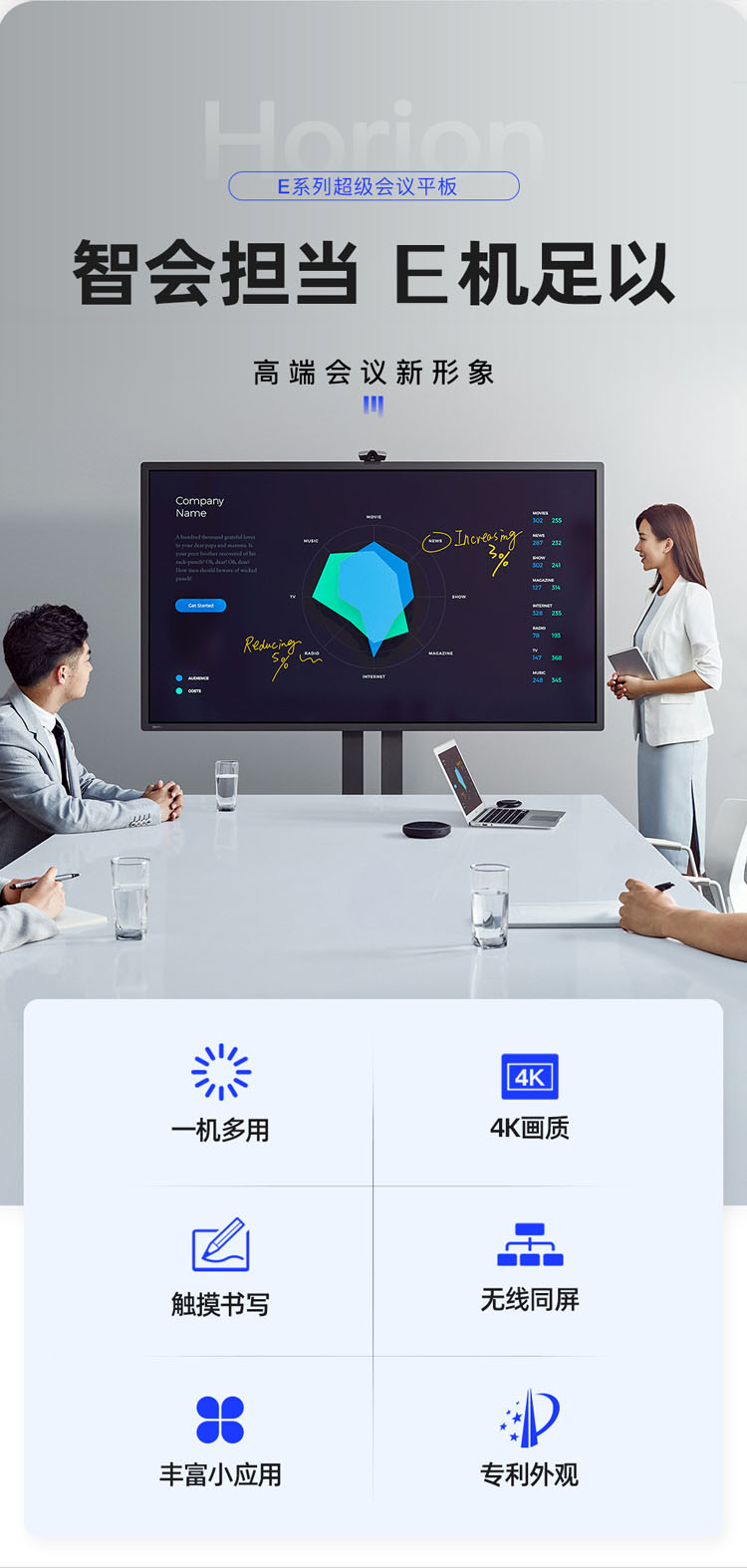 皓麗 Horion E55超級智能會議平板商用顯示電子白板辦公教學(xué)投影觸摸書寫標(biāo)配含智能筆同屏器
