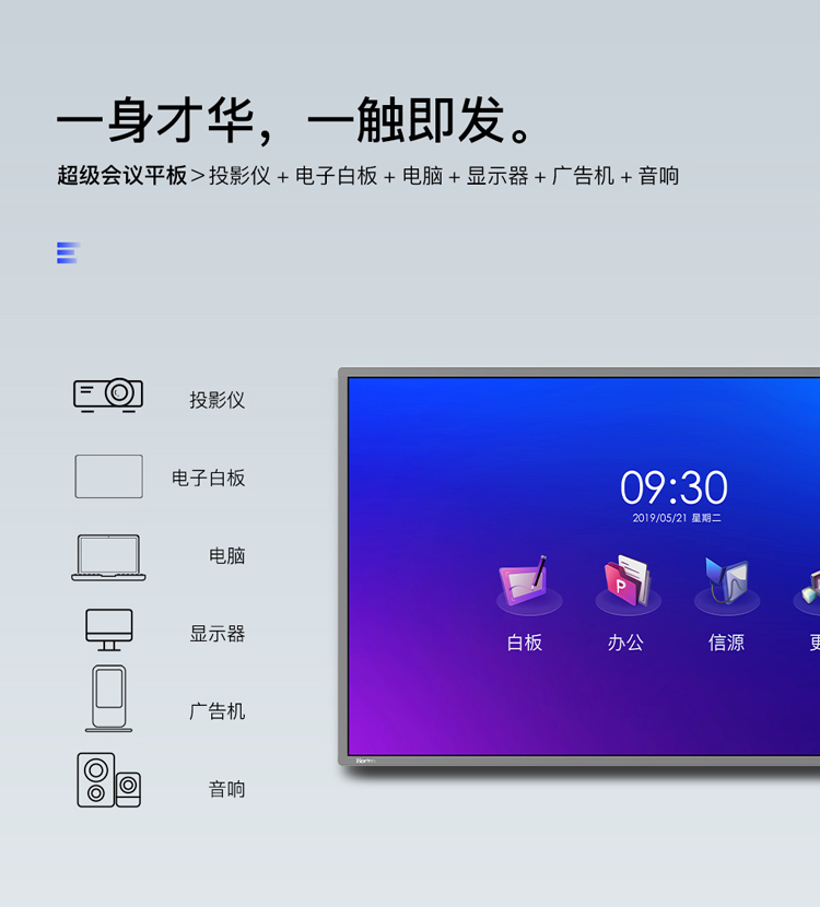 • 產(chǎn)品名稱:皓麗 Horion E55超級智能會議平板商用顯示電子白板辦公教學(xué)投影觸摸書寫標(biāo)配含智能筆同屏器