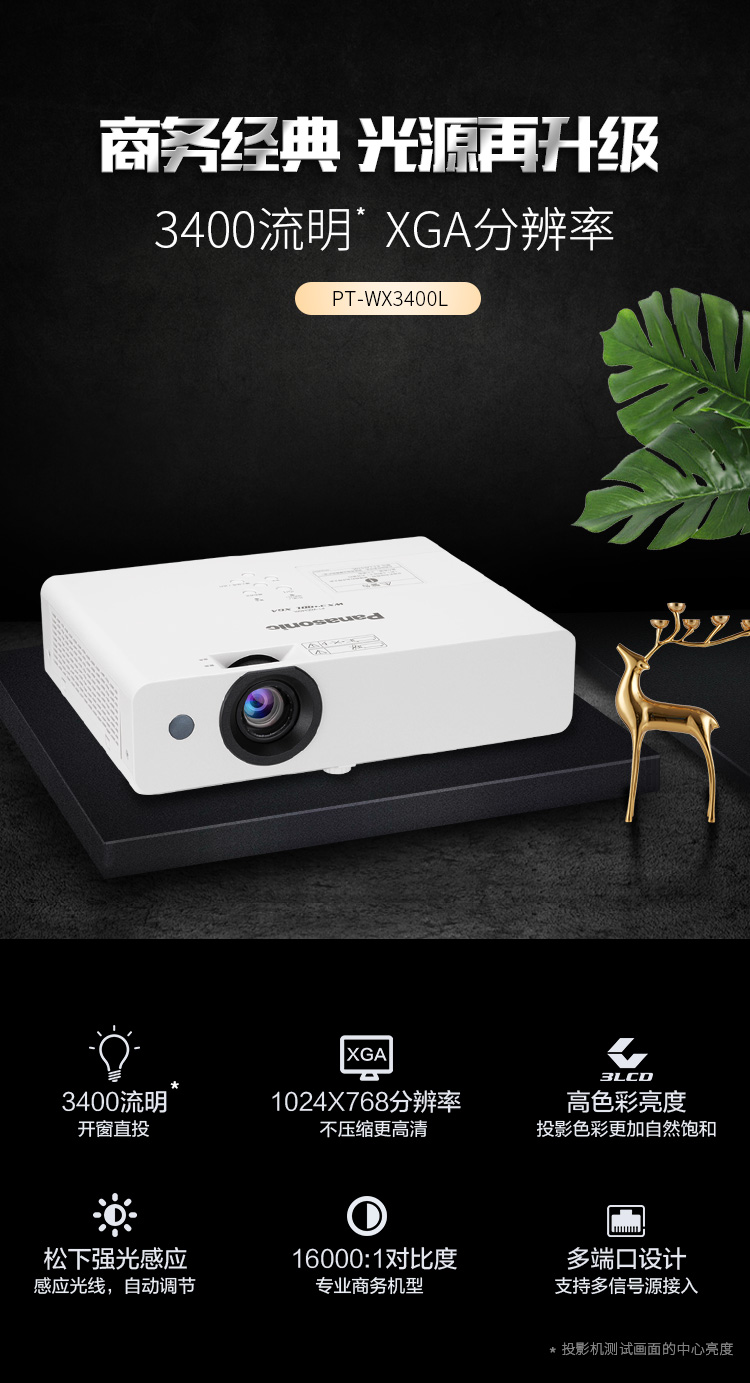 • 產(chǎn)品名稱:松下(Panasonic)PT-WX3400L 投影儀 投影機辦公(標清 3400流明 HDMI)