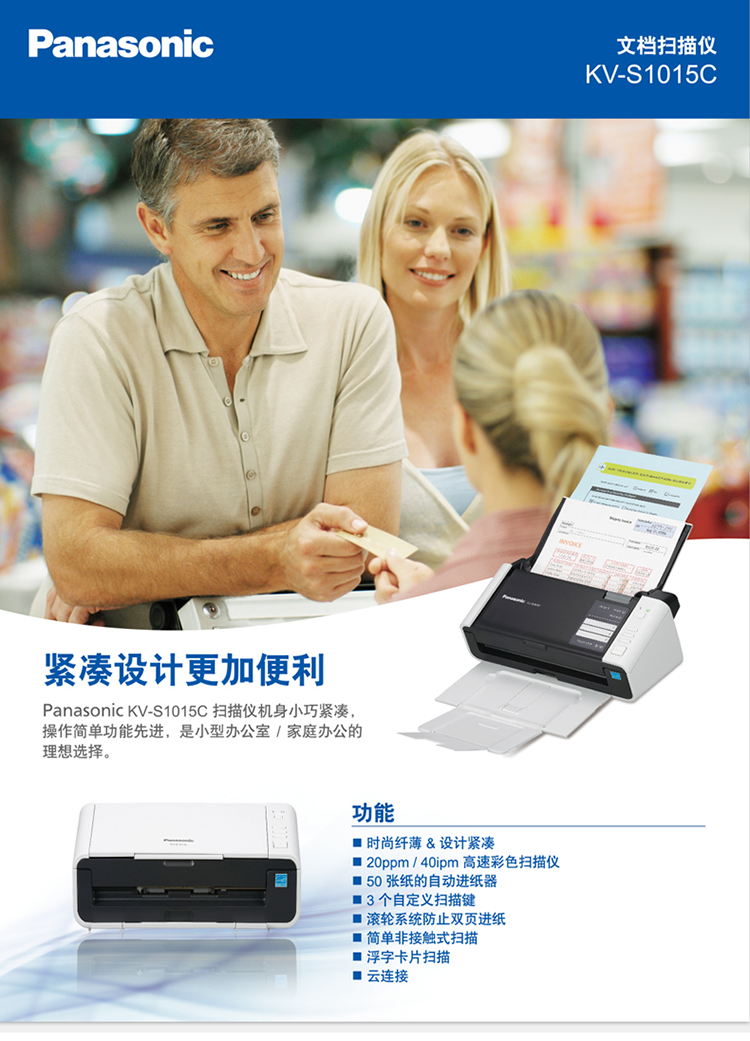 • 產(chǎn)品名稱:松下(PANASONIC)KV-S1015C 彩色文檔掃描儀