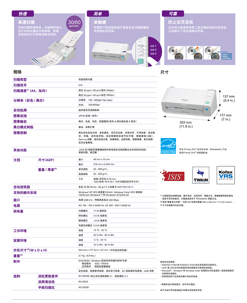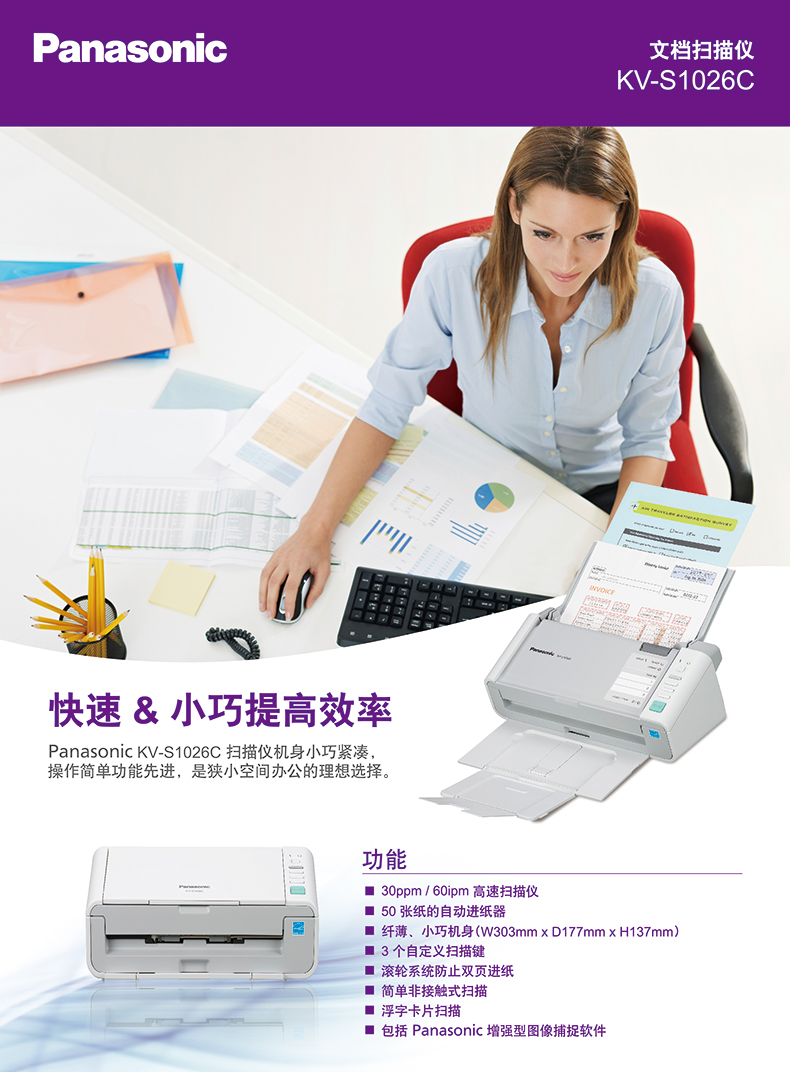 • 產(chǎn)品名稱:松下 KV-S1026C A4高速高清雙面文檔掃描儀