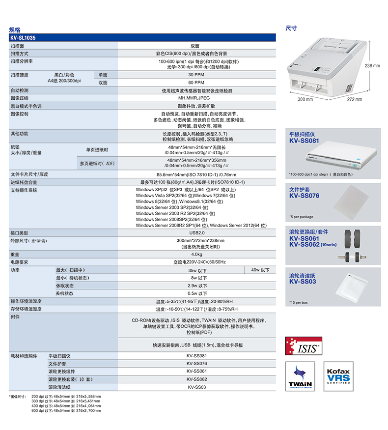 • 產(chǎn)品品牌:松下 KV-SL1035 彩色文檔掃描儀