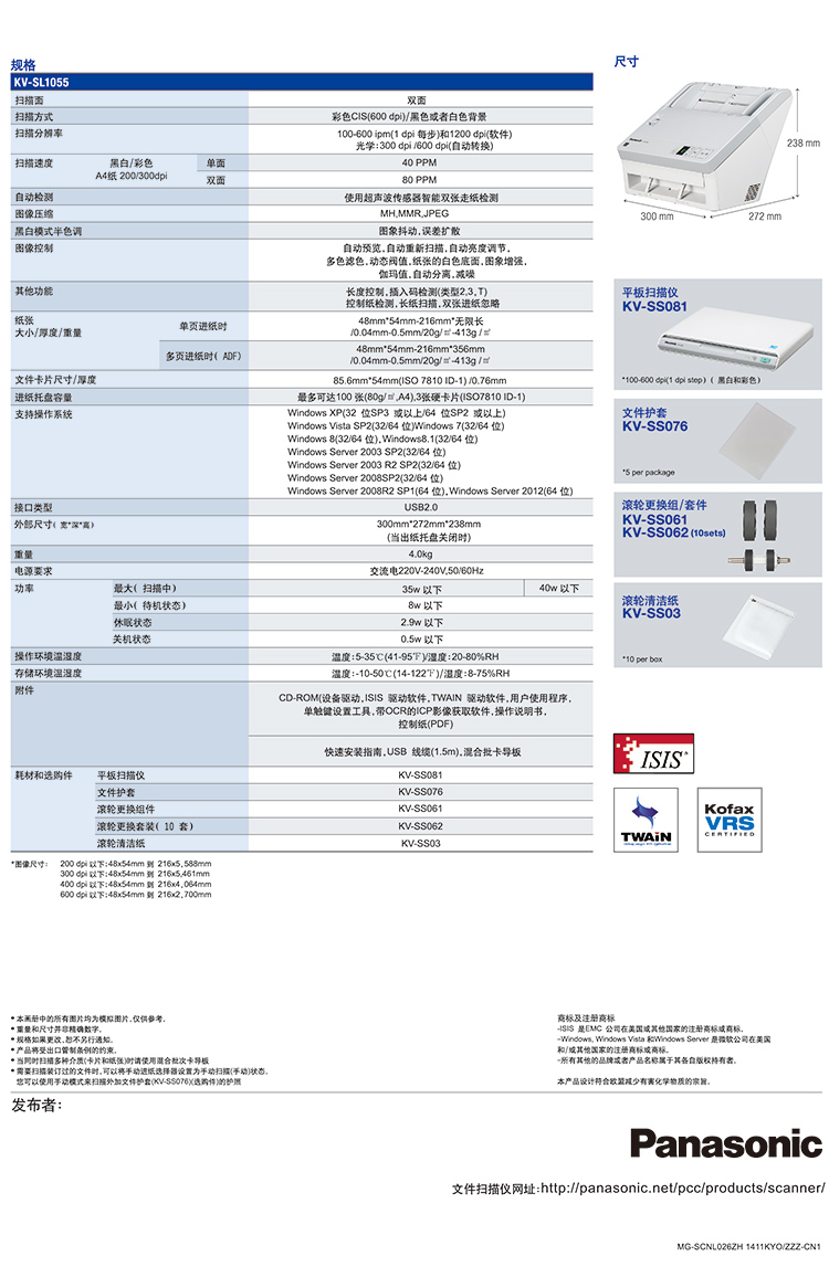 • 產(chǎn)品品牌:松下 KV-SL1055 彩色文檔掃描儀