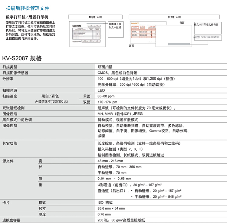 • 產(chǎn)品名稱:松下 KV-S2087 高速高清彩色文檔掃描儀