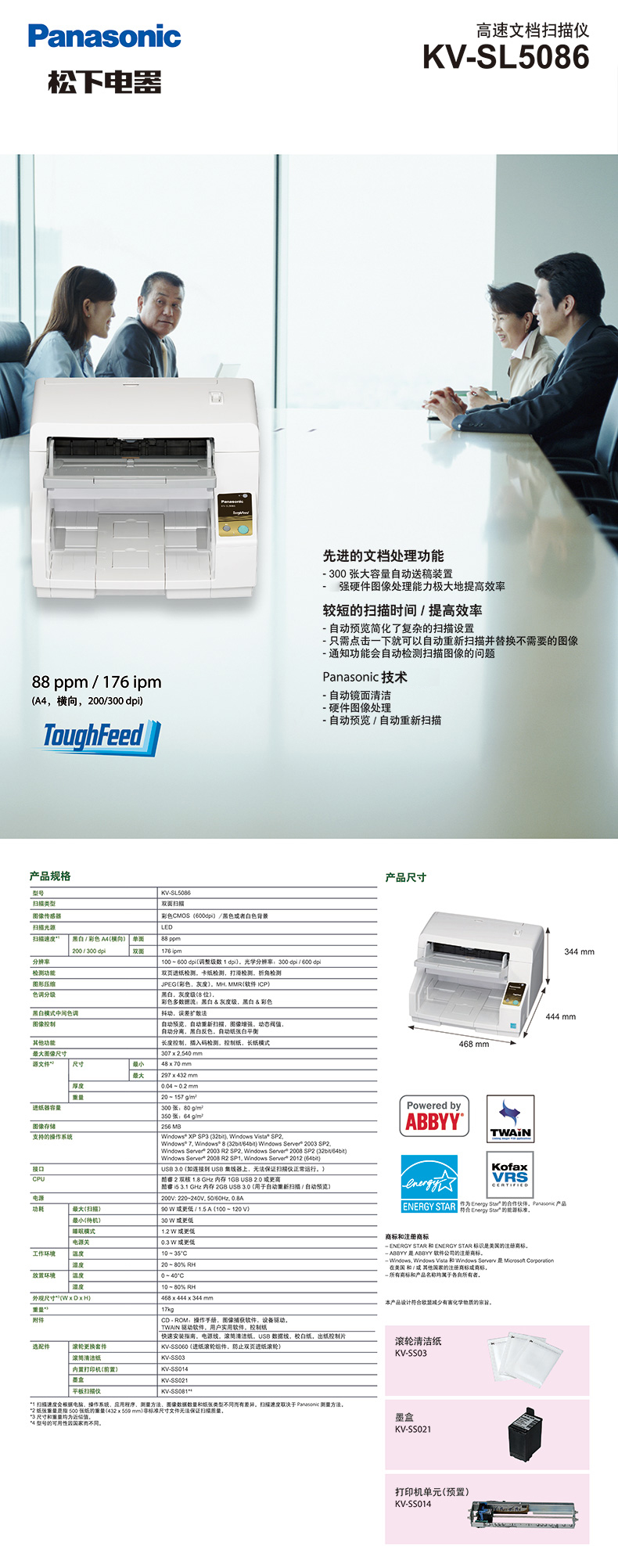 • 產(chǎn)品名稱(chēng):松下 KV-SL5086 A3彩色高速文檔掃描儀