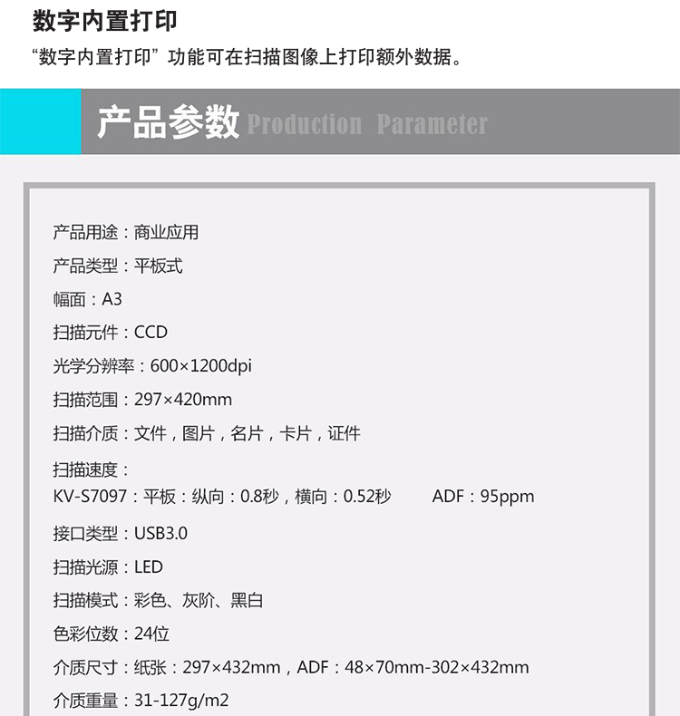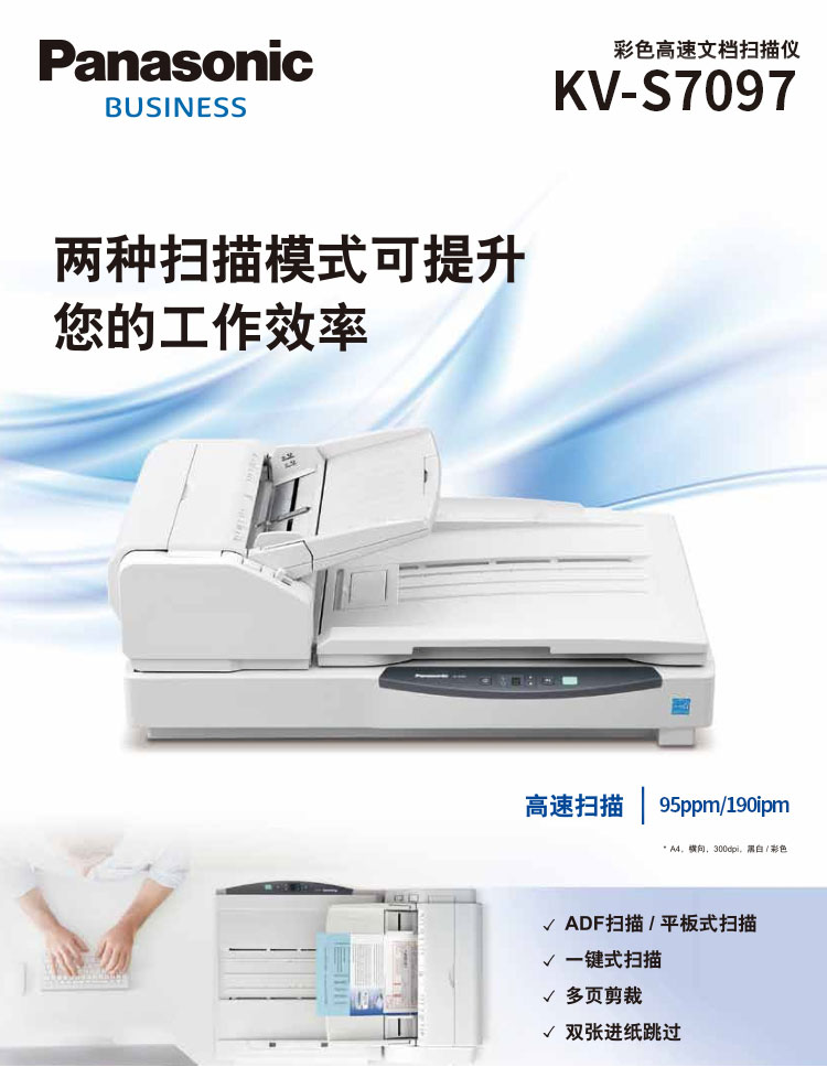 • 產(chǎn)品品牌:松下 KV-S7097 A3高速雙面彩色文檔掃描儀