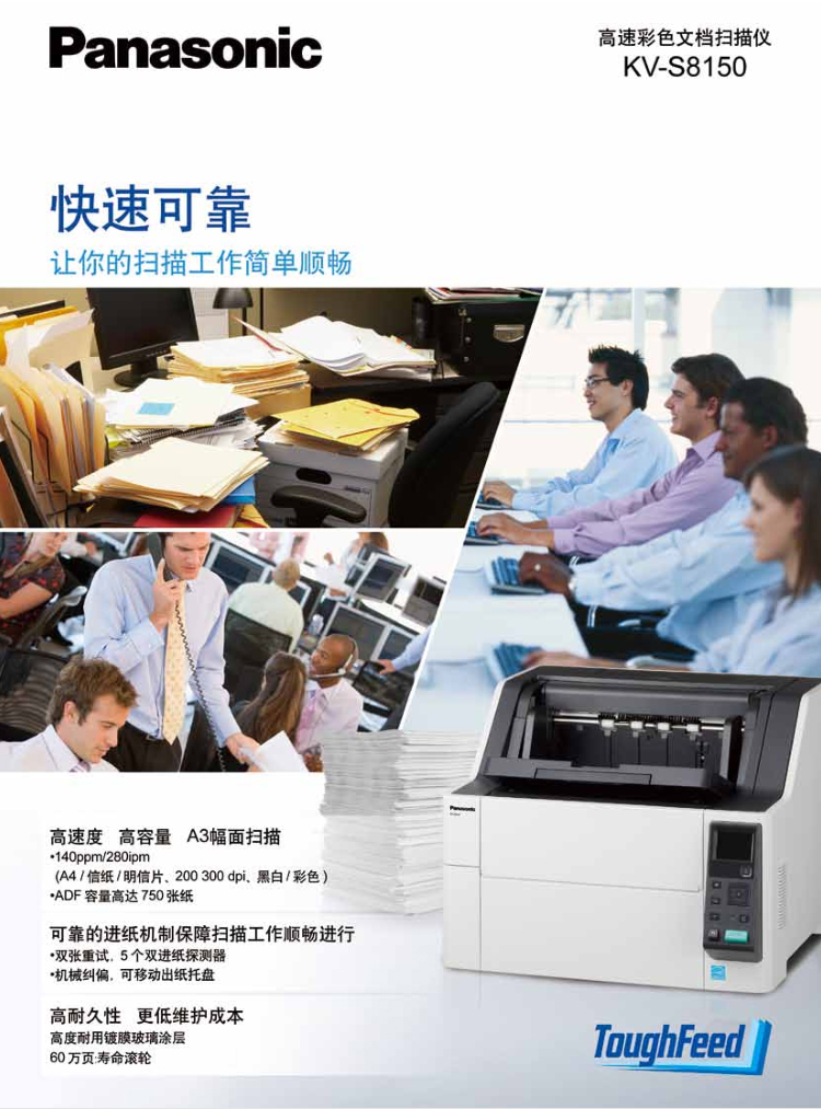 • 產(chǎn)品名稱:松下 KV-S8150 A3高速雙面自動饋紙文檔掃描儀
