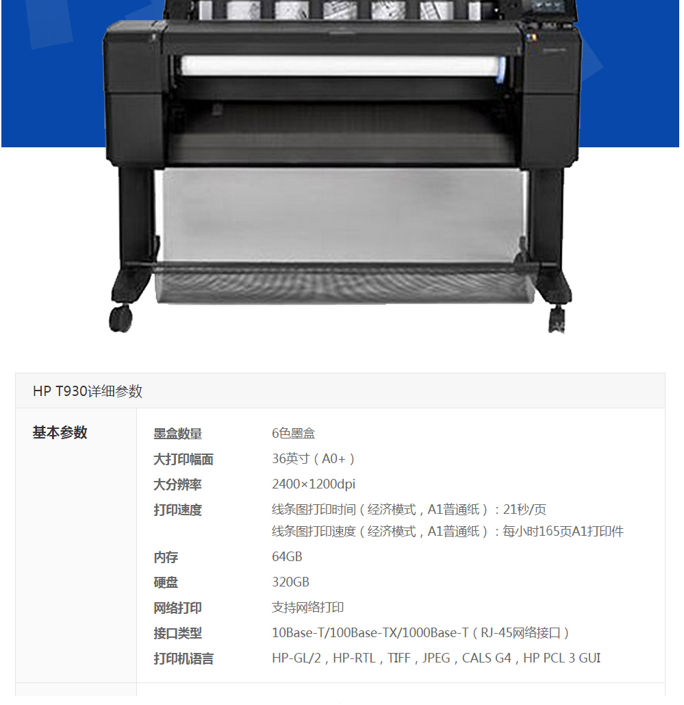 • 產(chǎn)品品牌:惠普 HP DesignJet T930 36英寸A0 大幅面繪圖儀打印機(jī)
