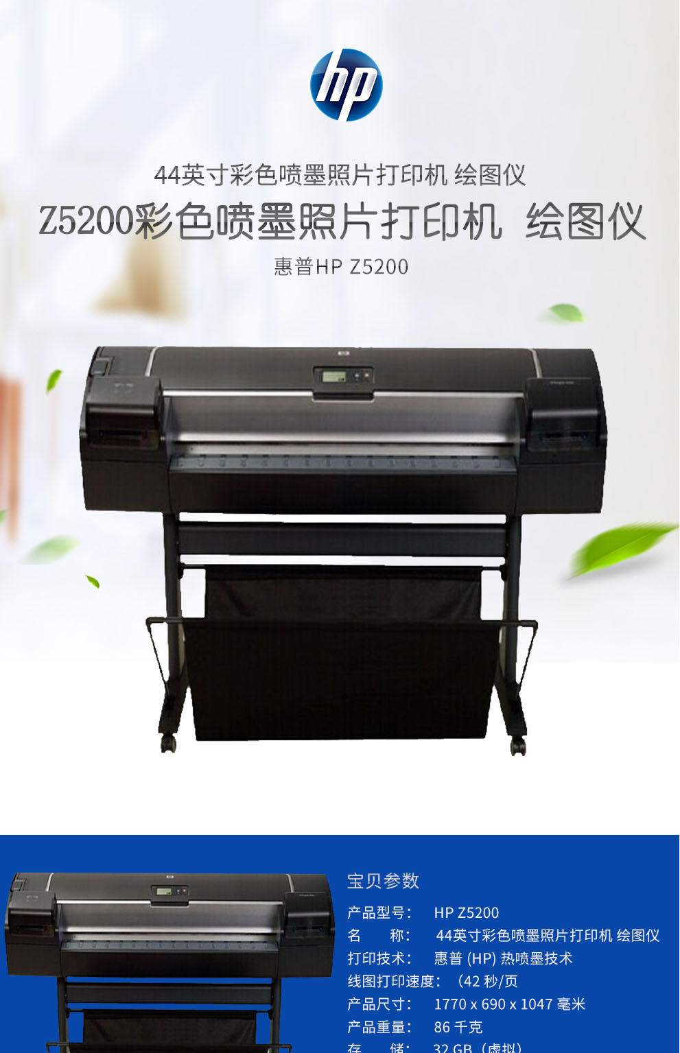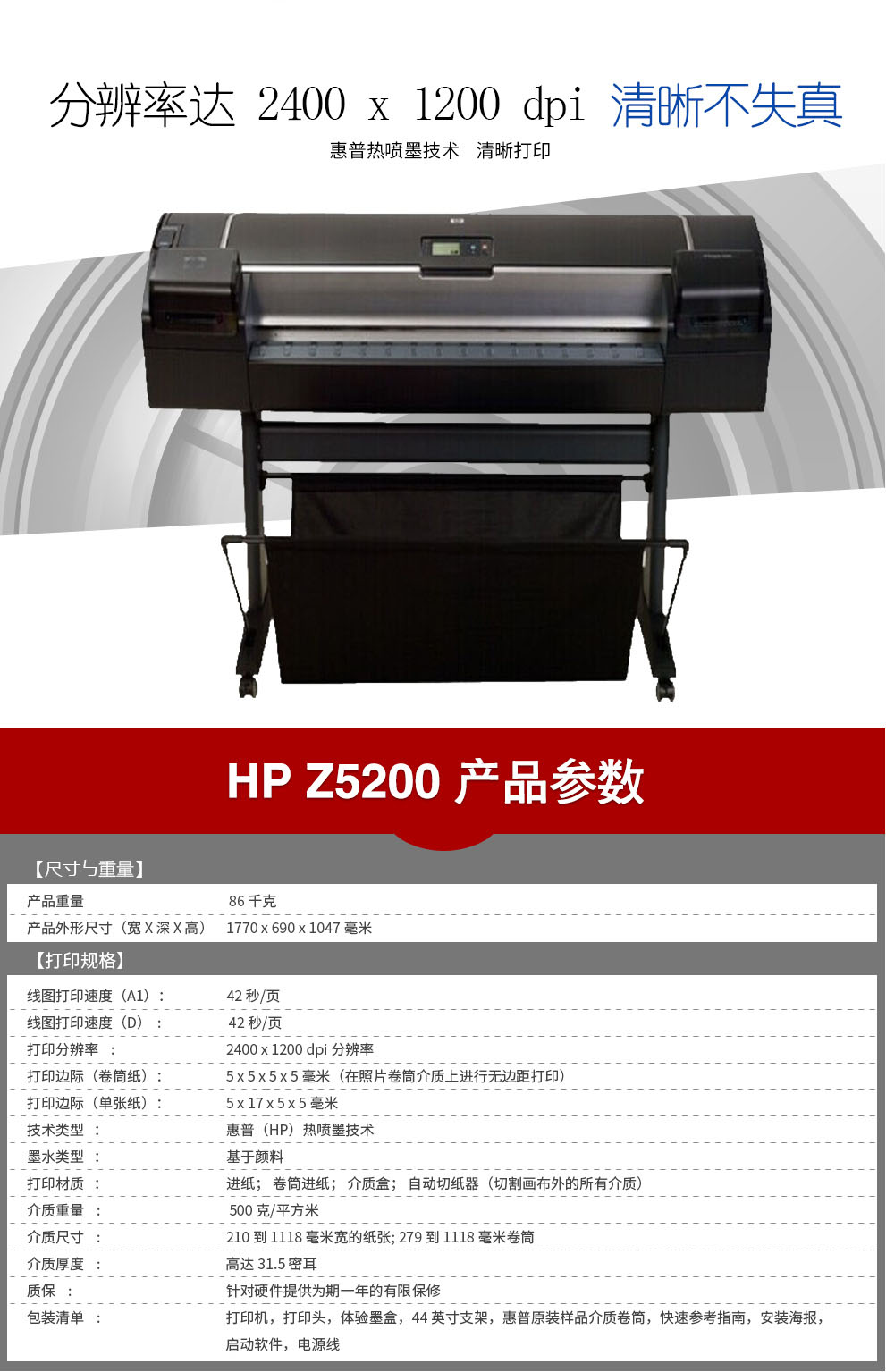 • 產(chǎn)品名稱:惠普(HP)Z5200PS B0幅面(44英寸)彩色大幅面CAD大幅面工程圖打印機繪圖儀