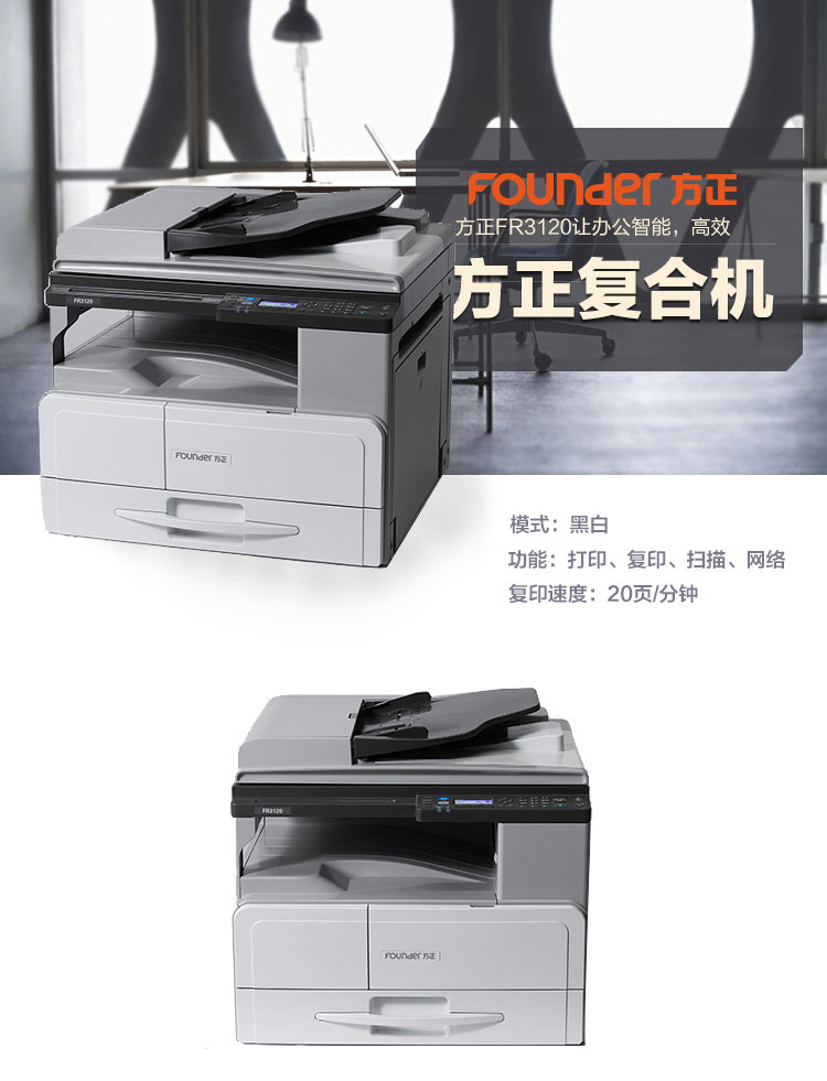 • 產(chǎn)品名稱:方正 (Founder) FR3120 多功能數(shù)碼復合機掃描復印機打印機一體機