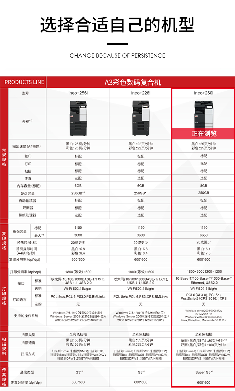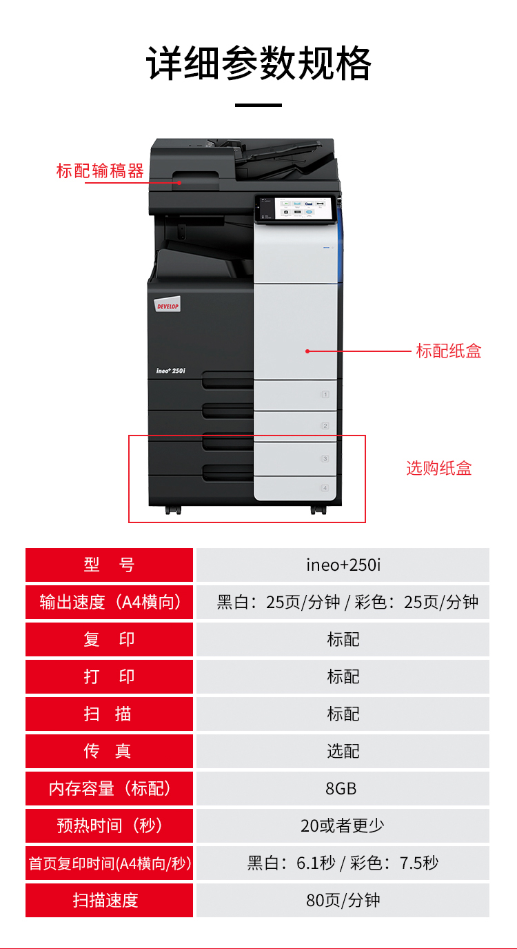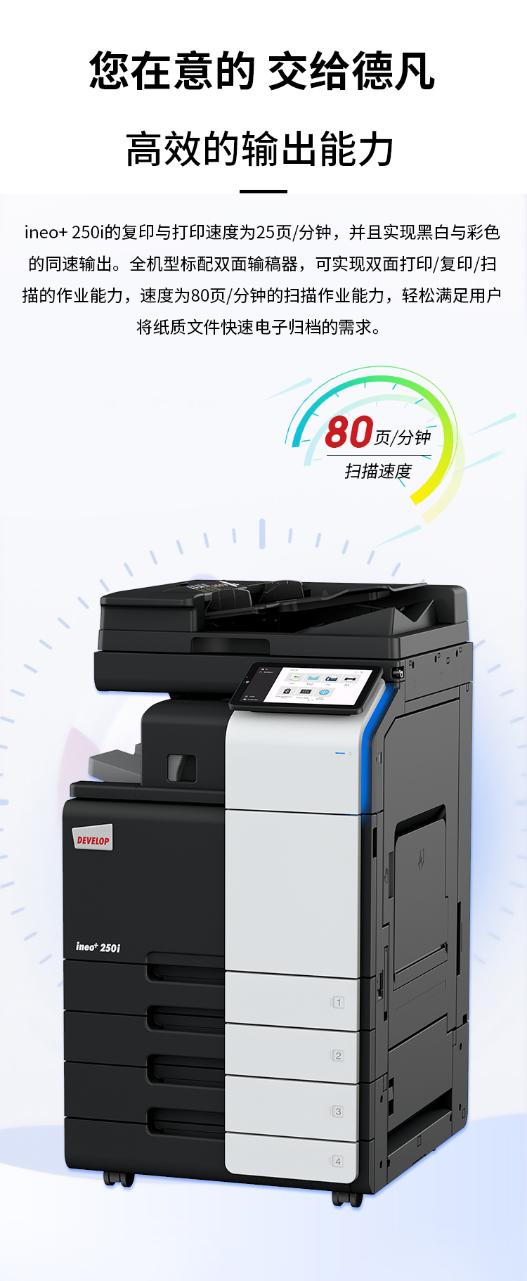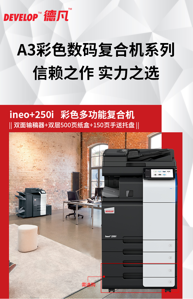 • 產品品牌:德凡 DEVELOP ineo+250i A3彩色多功能復合機