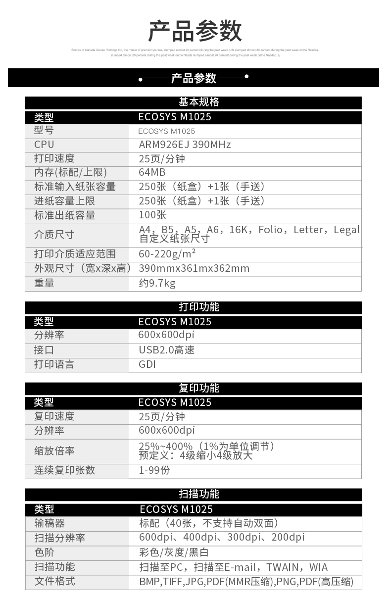 • 產(chǎn)品品牌:京瓷(KYOCERA)ECOSYS M1025多功能一體機(jī)
