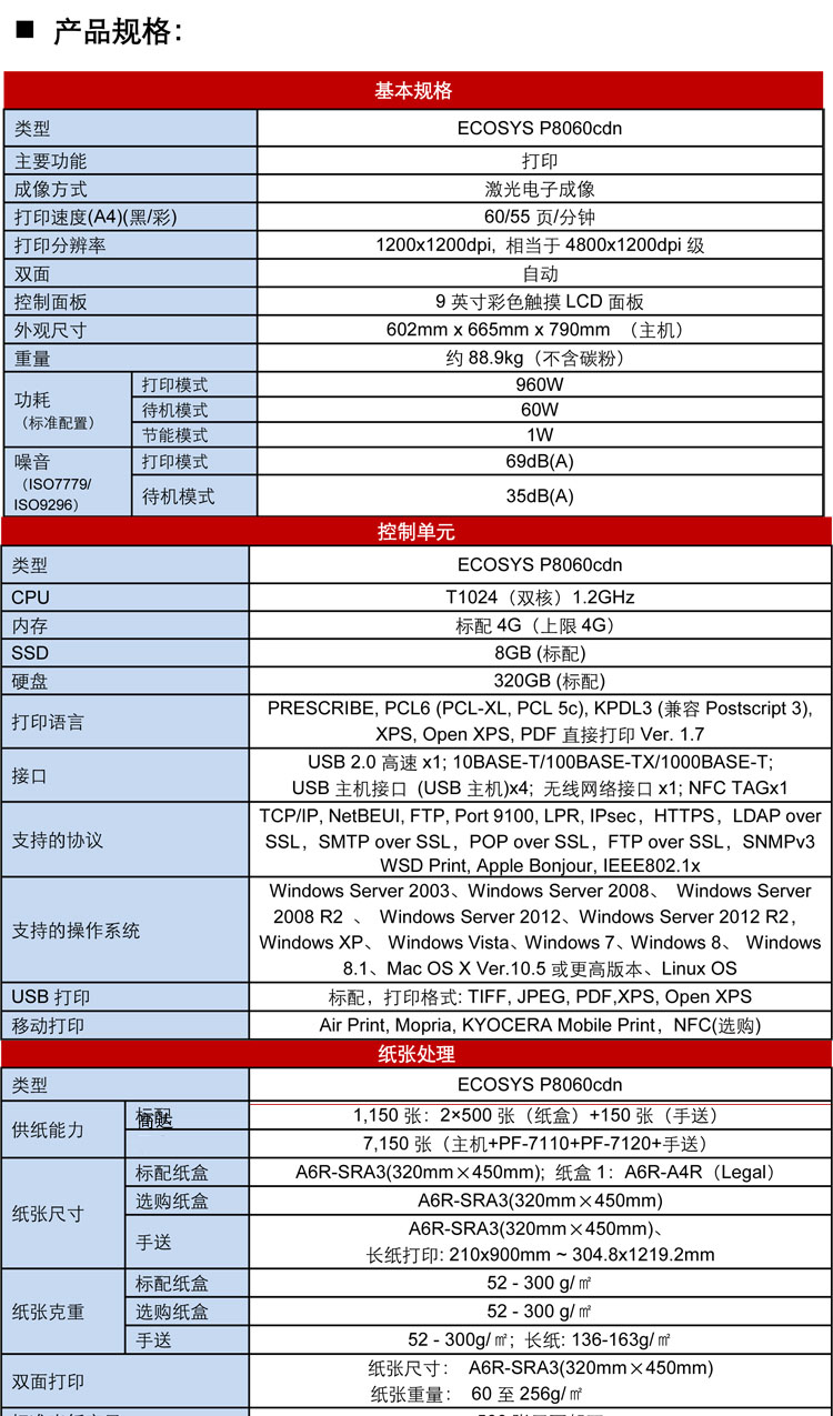 • 產(chǎn)品品牌:京瓷(KYOCERA)P8060cdn激光打印機(jī)
