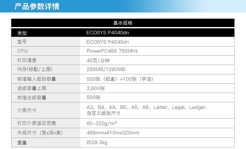 • 產品名稱:京瓷(KYOCERA)P4040dn激光打印機